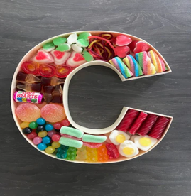 Great for Birthdays and other Special Occasions. Depending on size, our Letters and Numbers contain around 350g -500g of Pick & Mix. The letters are made from plywood and stand at 22cm in height. They will arrive beautifully presented and wrapped up tightly in cellophane, so no sweet escapes before they’re delivered to your door!